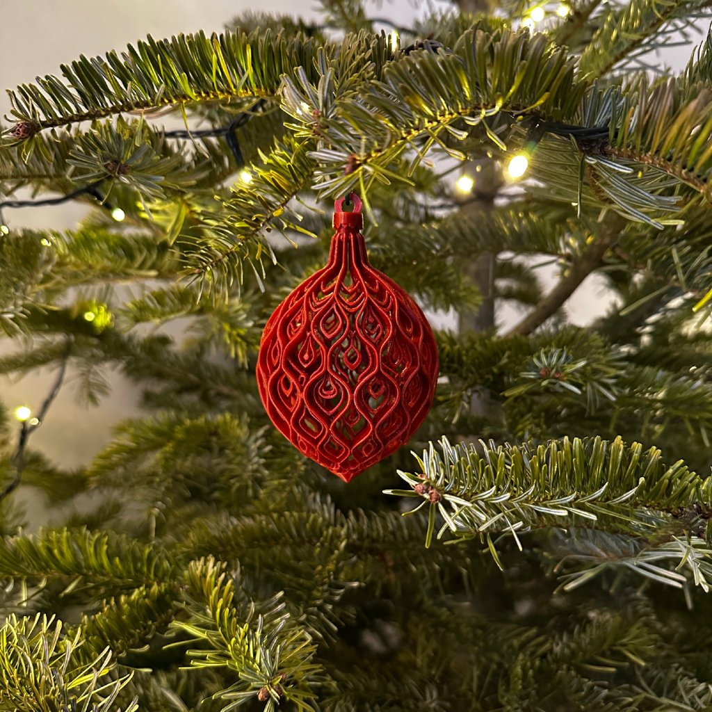 Tato originální vánoční baňka není jen dekorací – je symbolem elegance a originality. Vyrobená pomocí 3D tisku z kvalitního materiálu PLA Silk se pyšní velikostí 12,5 x 7,5 cm. Díky této technologii má každá ozdoba strukturovaný povrch, který je charakteristický pro tento výrobní proces.