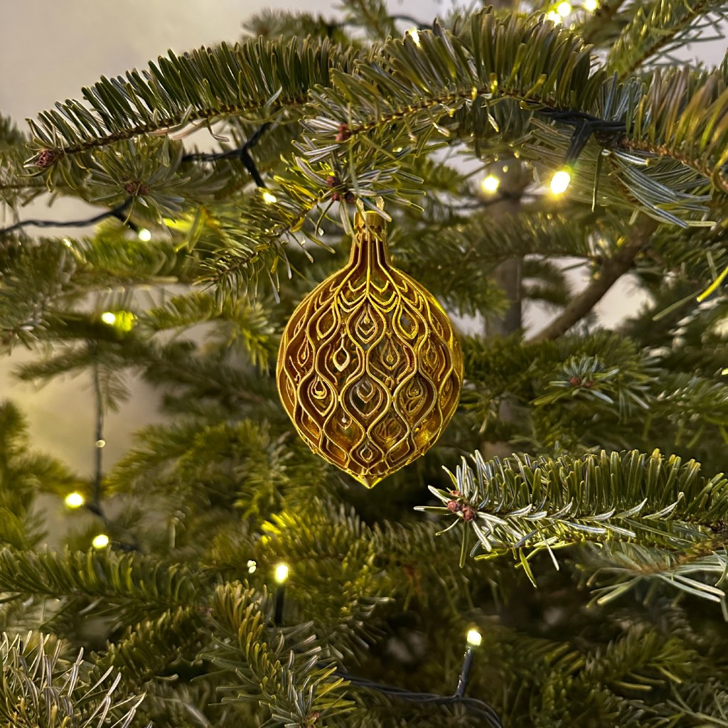 Tato originální vánoční baňka není jen dekorací – je symbolem elegance a originality. Vyrobená pomocí 3D tisku z kvalitního materiálu PLA Silk se pyšní velikostí 12,5 x 7,5 cm. Díky této technologii má každá ozdoba strukturovaný povrch, který je charakteristický pro tento výrobní proces.